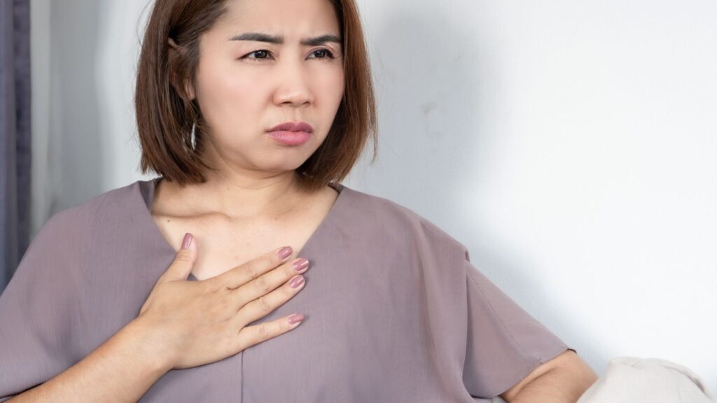 Ongoing acid irritation can inflame the throat and vocal cords, leading to excess mucus, frequent throat clearing, or hoarseness. These symptoms often worsen at night or after eating and may create the sensation of breathing difficulty.